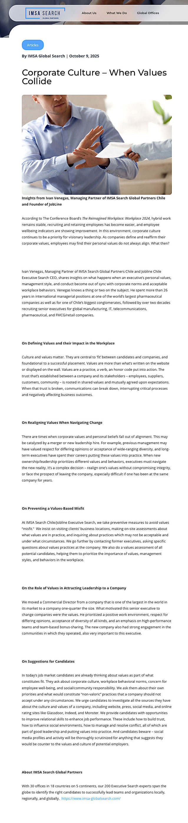 NewsCorporate Culture – When Values Collide [read more] IMSA Search Global Partners Continues Expansion, Welcomes [read more] IMSA Search Global Partners Expands into Portugal with ARGO Partners [read more]